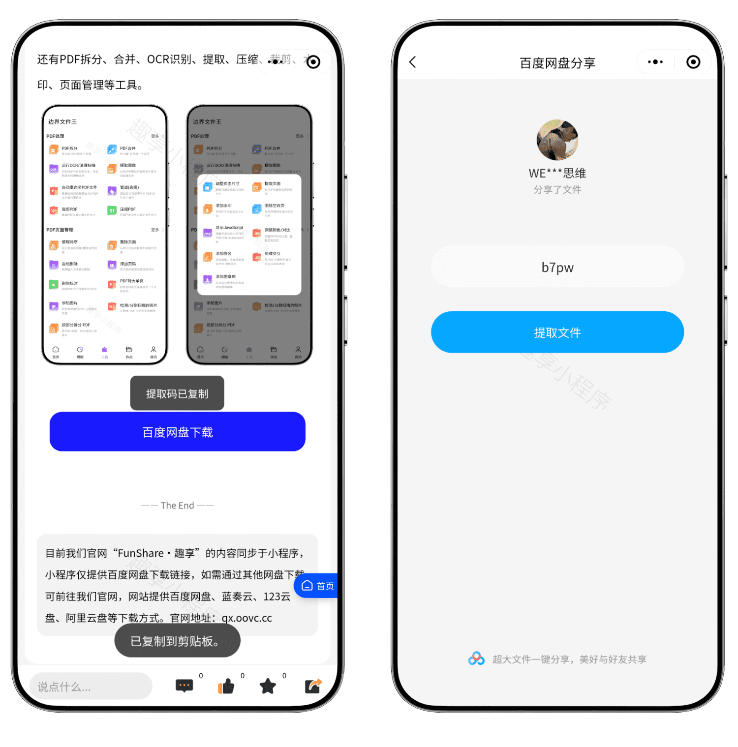 目前趣享小程序大部分文章仅提供百度网盘下载,如需获取夸克网盘、蓝奏云、迅雷云盘等网盘下载地址可以通过我们网站(